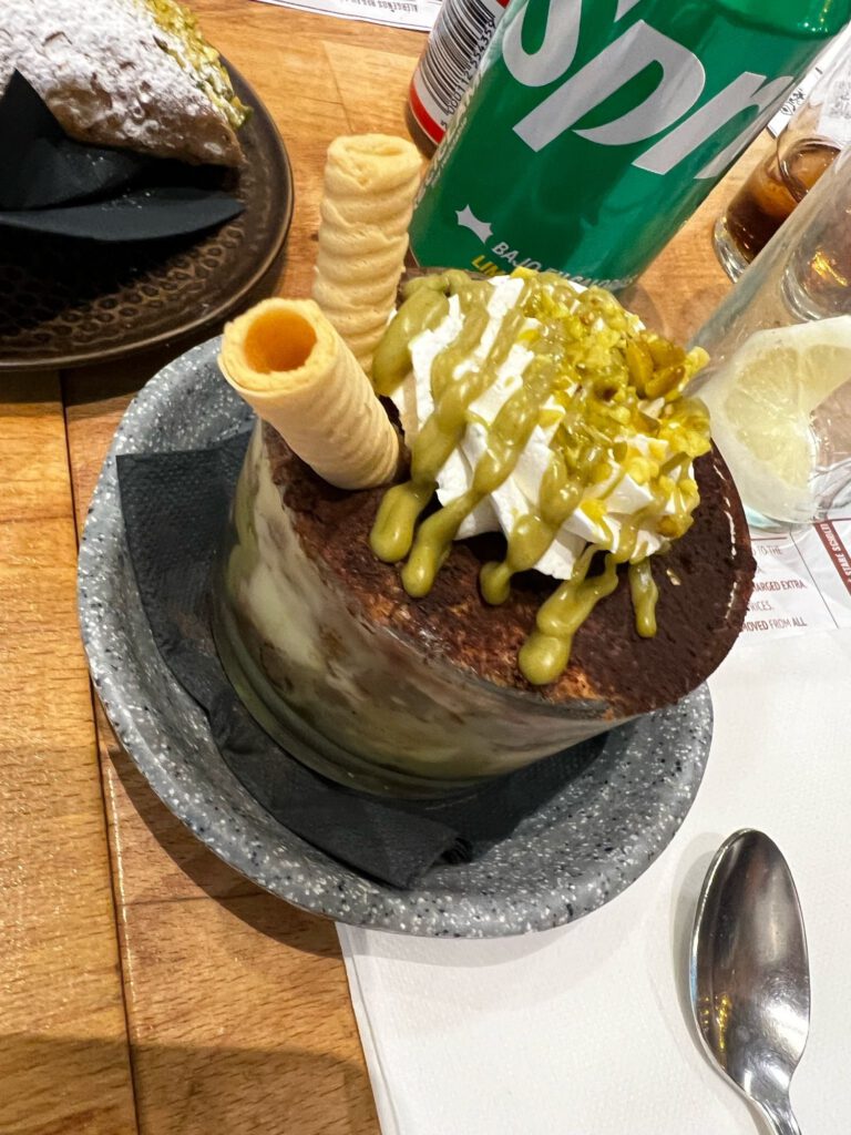 Al final de la cena seleccionamos un buen surtido de postres varios italianos y comemos una tarta típica de Semana Santa Pastiera.