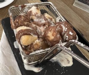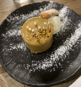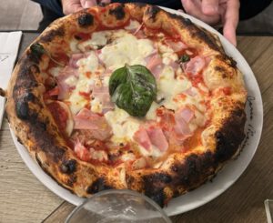 Todos pedimos pizza 🍕 y postres 😋. El restaurante cierra pronto y nos vamos a tomar algo a un bar llamado “xxx”.